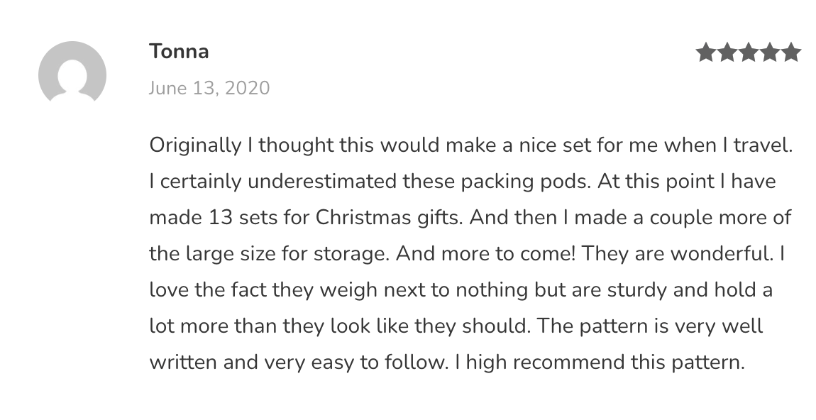 They're great for organisation make them in different colours to distinguish between the different contents or you can even use mesh for the top panel so you can see what's inside. They're also really handy when made in waterproof fabric for mucky camping trips.