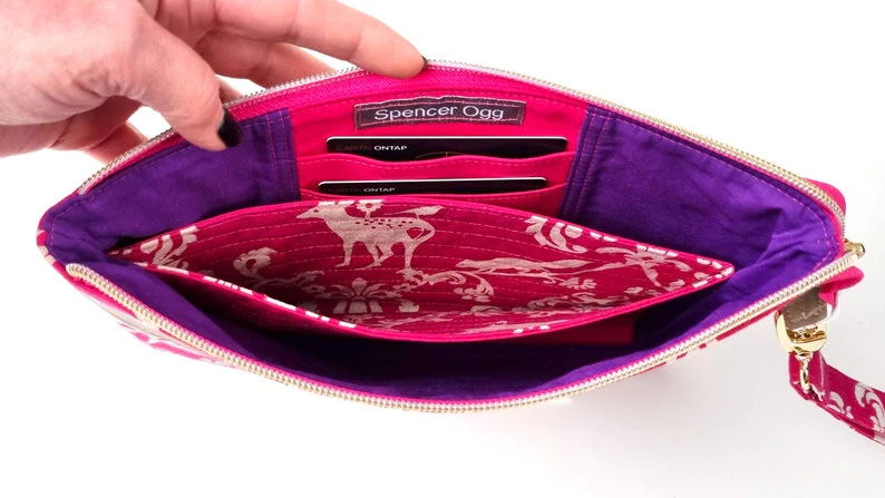 With its wide top zip opening, you can quickly grab your cards, cash or passport as you juggle airport security, trains, taxis—and still look stylish while you do it! The sturdy inside passport pocket divides the interior into sections for better organization while the credit card slots are each big enough to hold numerous cards. You can even hold an ipad without the case in this roomy clutch!