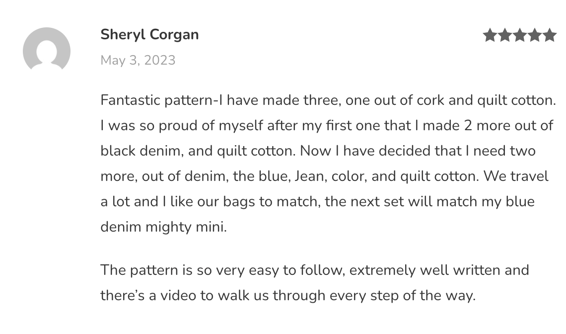 As this is a digital product, Sew Modern Bags offers a 7 day return for duplicate purchases only.