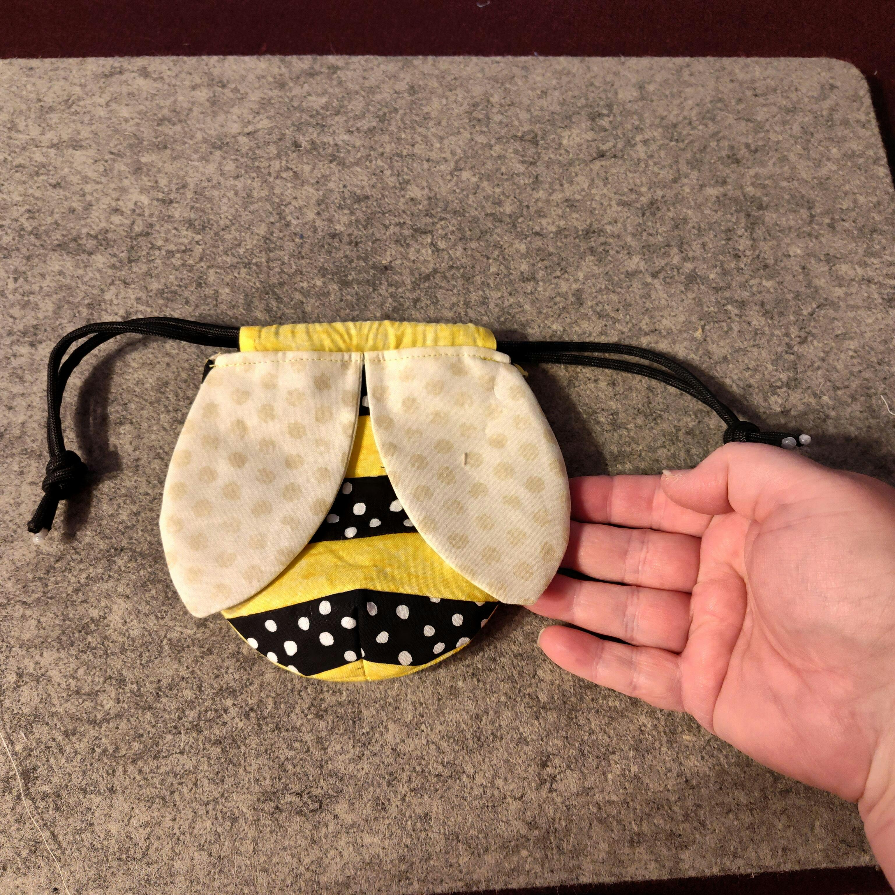 The Bumblebee Drawstring Pouch is a beginner-friendly adorable pouch that comes together quickly where no hardware is needed. This would be so cute as a keepsake bag for kids. Or to use as a gift bag to deliver a Spring, honey or bee related gift to a friend.