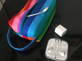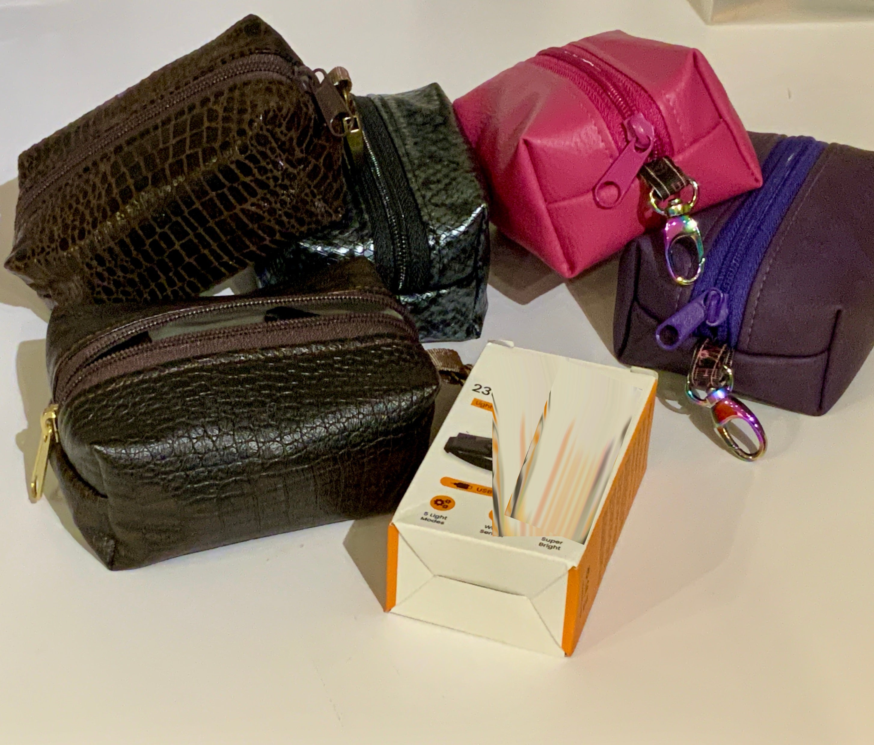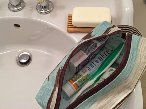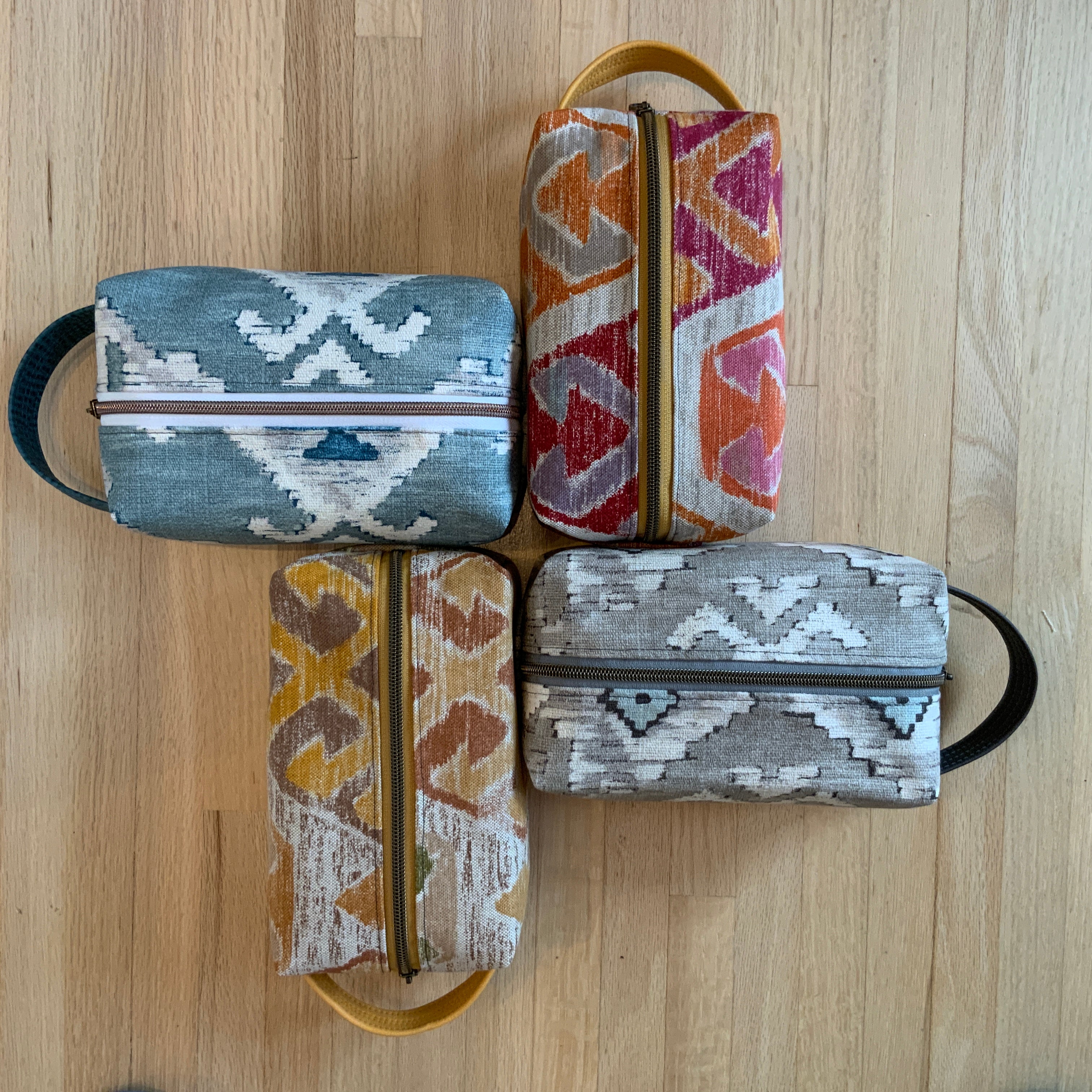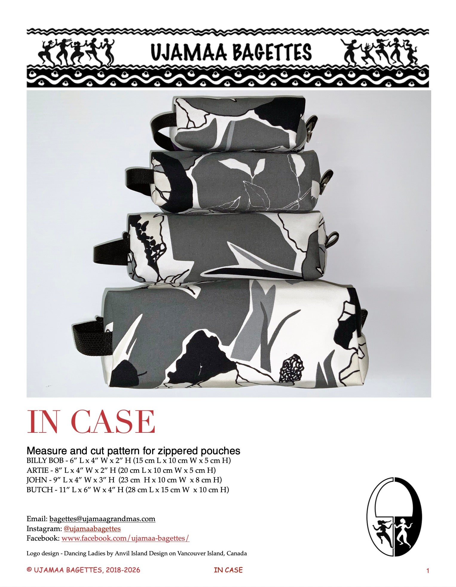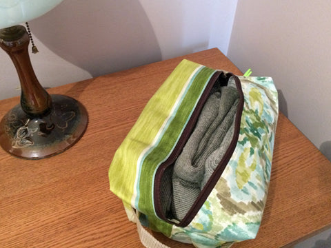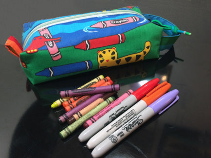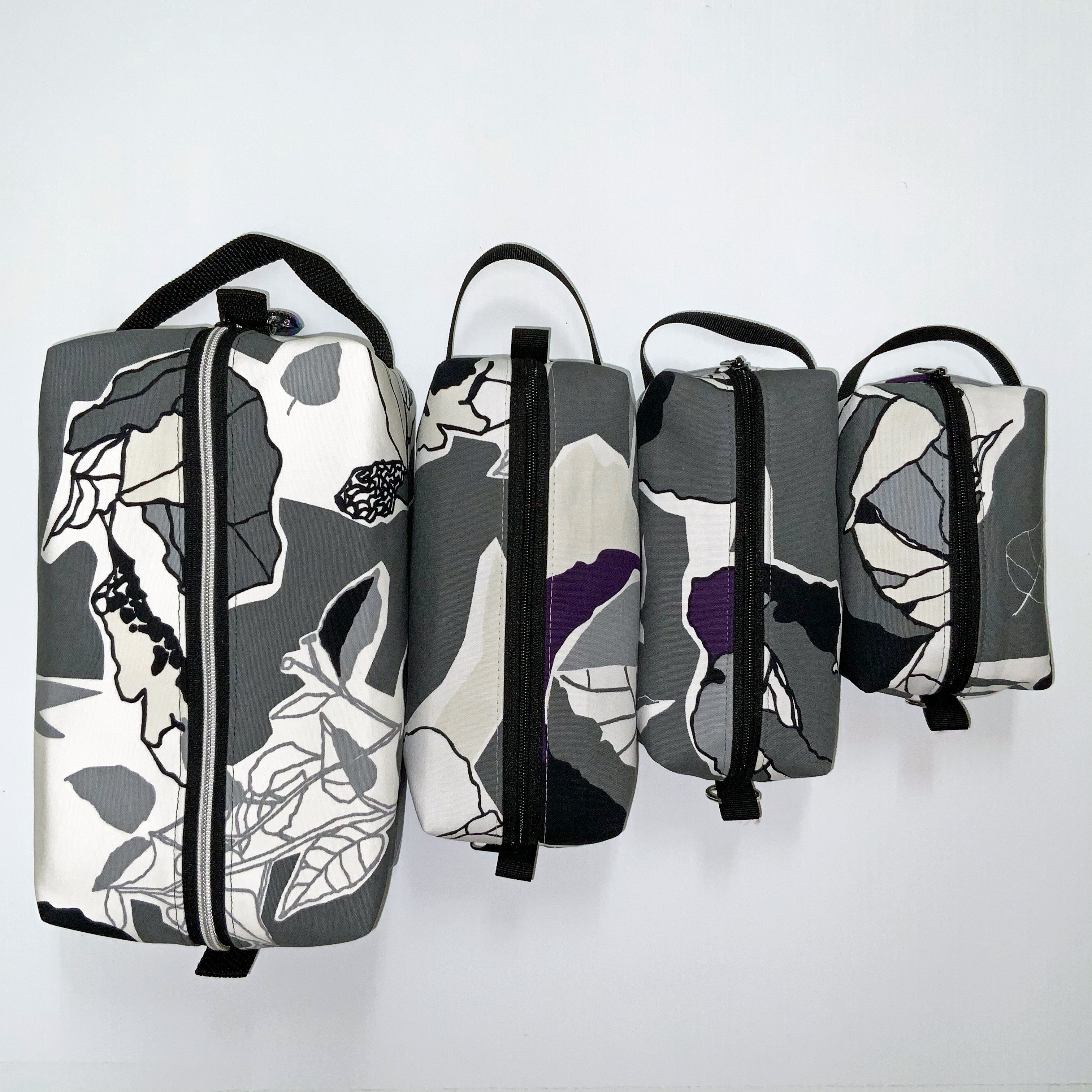 Store electronic chargers, art supplies, toiletries, projects, miscellaneous gear in one of these easy-to-make, lined, zippered pouches. Each pouch has a convenient handle on one end for carry along and a handy pull tab on each end for easy zipper opening and closing. Make these cases with one or two fat quarters or full-width fabric depending upon size.