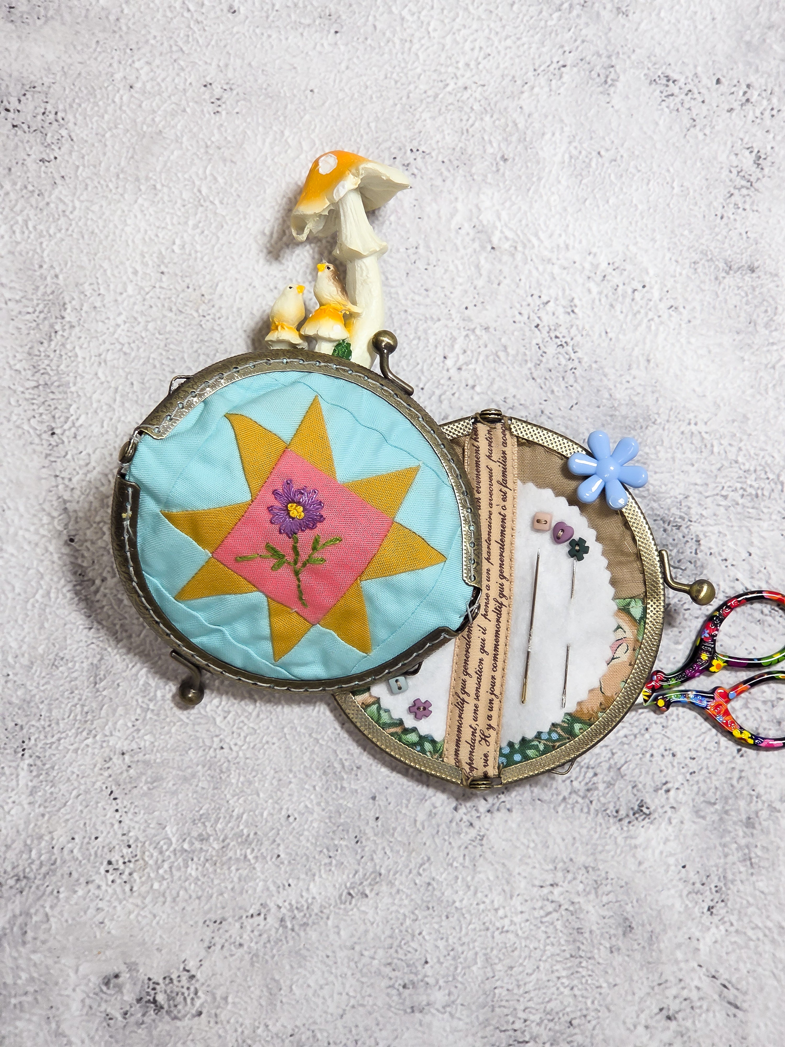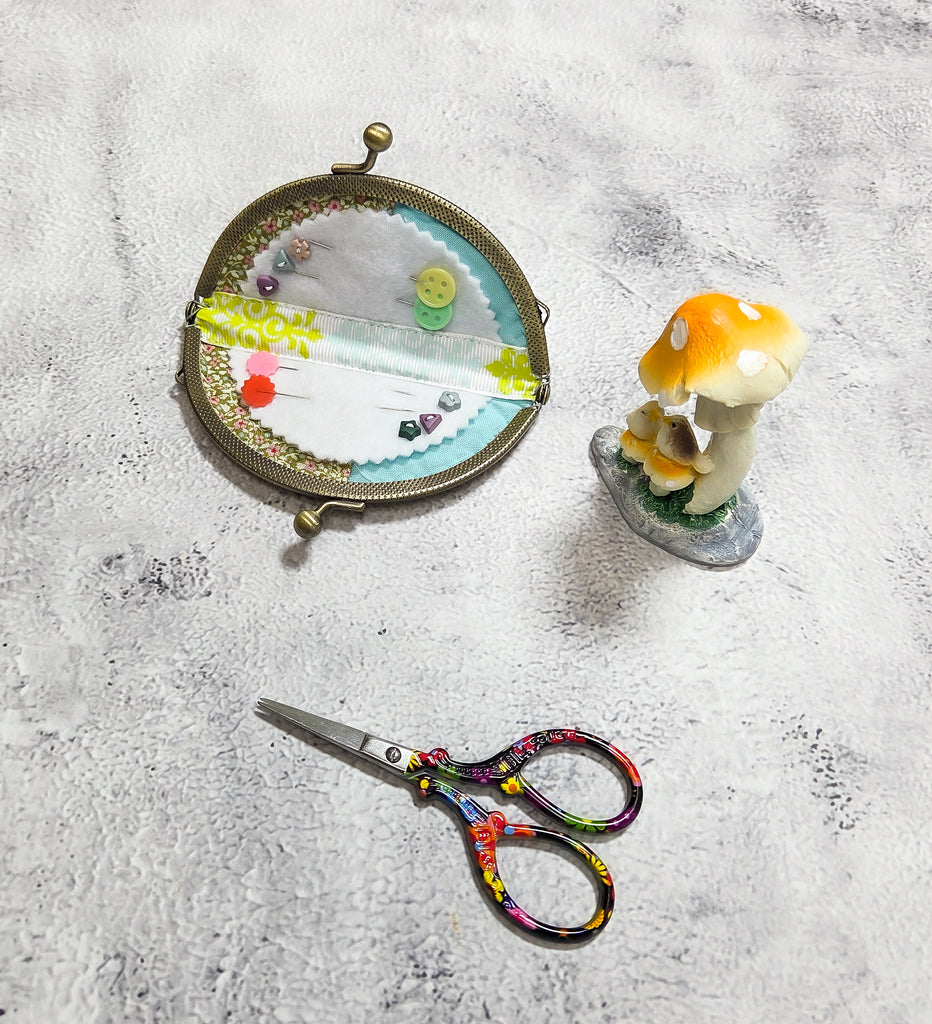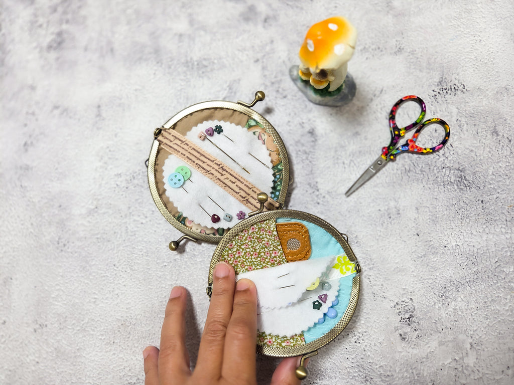 This charming little pouch is designed for a 10 cm clasp frame, which is perfect for holding needles, small thimbles, threaders, or stitch markers. Whether you're hand sewing on the go or organizing your sewing kit, this pouch adds a touch of handmade sweetness to your craft life.