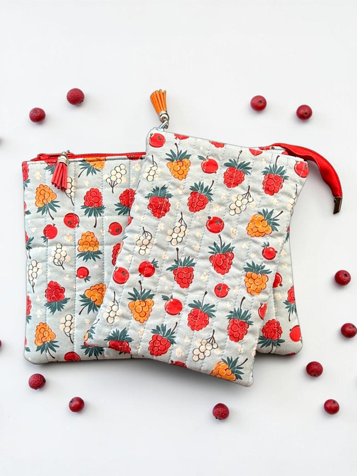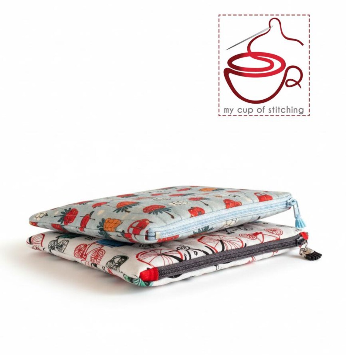 This set includes four step-by-step sewing tutorials for quilted zipper pouches in different sizes. The pouches are soft, padded, and practical. You can use polyester or cotton batting, foam, or fleece (with fleece, the puff effect will be less) to achieve different levels of puffiness.
