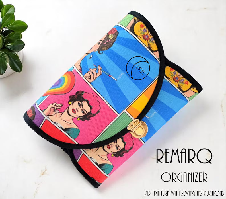 The instructions, filled with pictures, take you through each step of the project for both woven and vinyl version (the woven version is finished with binding). You can choose between two shapes – rounder or more rectangular - allowing for a wider variety of closure options.