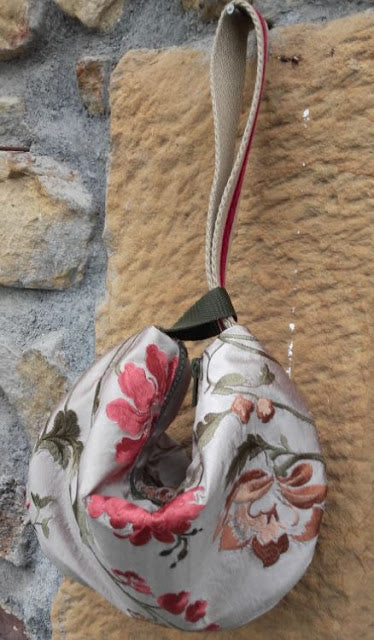 In Regency England, you would have seen fancy ladies carrying their "must haves" in little pouches matching that description. This pattern has updated the reticule to 21st century requirements. You carry this bag around by a wrist strap that is embellished with ribbon.