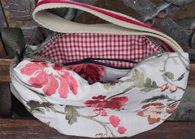 The Retro Reticule is a fun salute to vintage purses. Its crescent shape was popular in the mid-1900s, but the word "reticule"goes back a little further in history. It refers to a small handbag, typically having a drawstring (sort of like my Bundled Up Bindle Bag, but smaller).