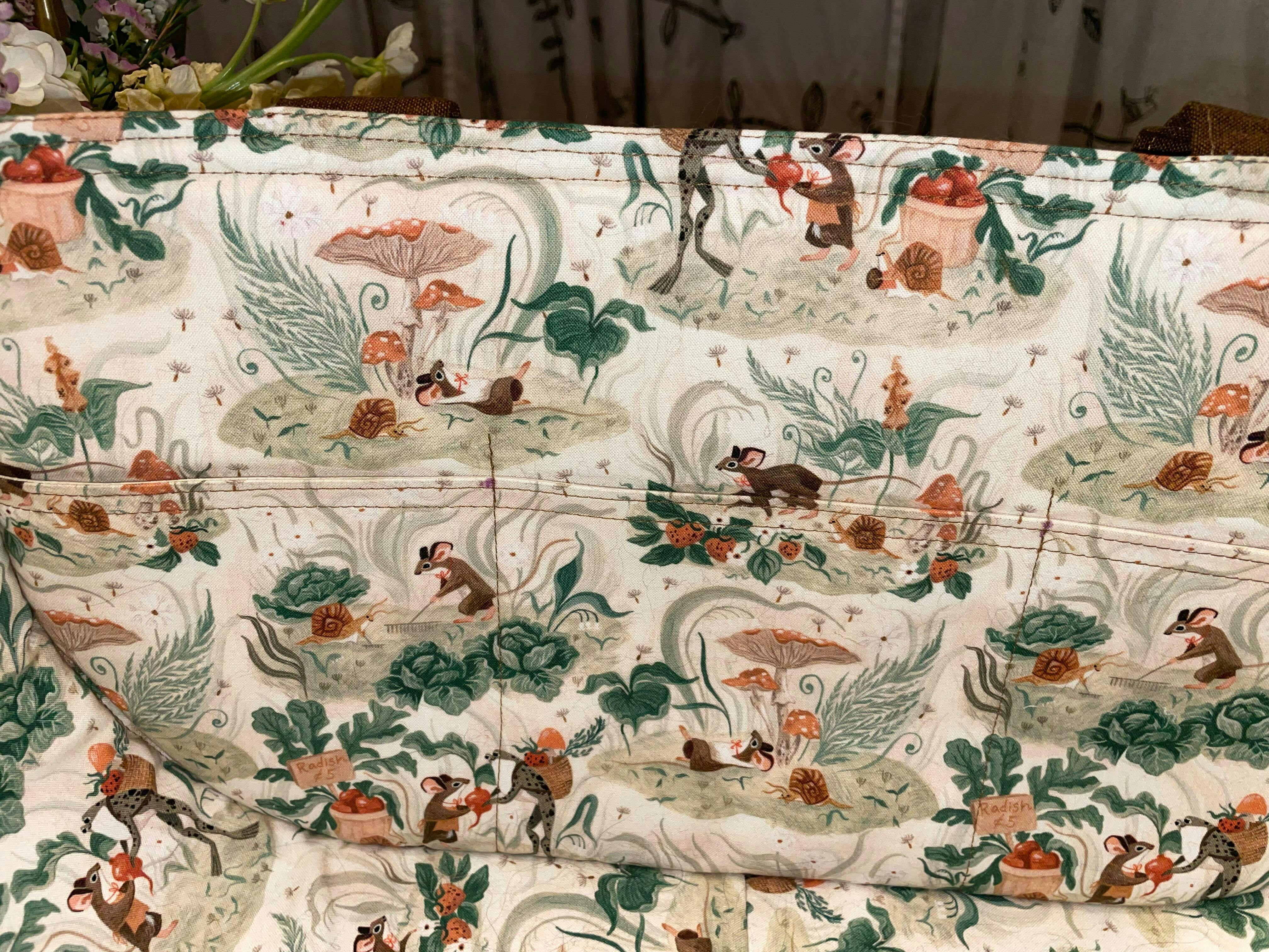 The large Seville Trug has inner slip pockets and two handles, the medium has one handle and slip pockets inside and the small one has neither handles nor pockets. In the requirements and instructions, the first will always be for the large trug and the other two will be shown in labelled brackets behind. The construction for all three is exactly the same unless shown.
