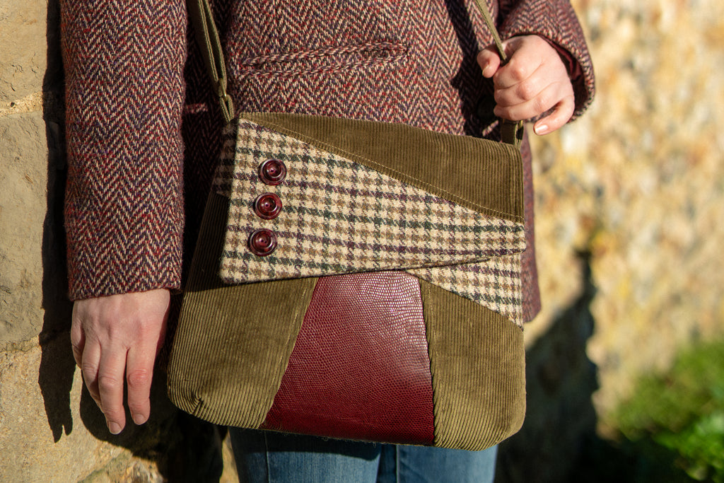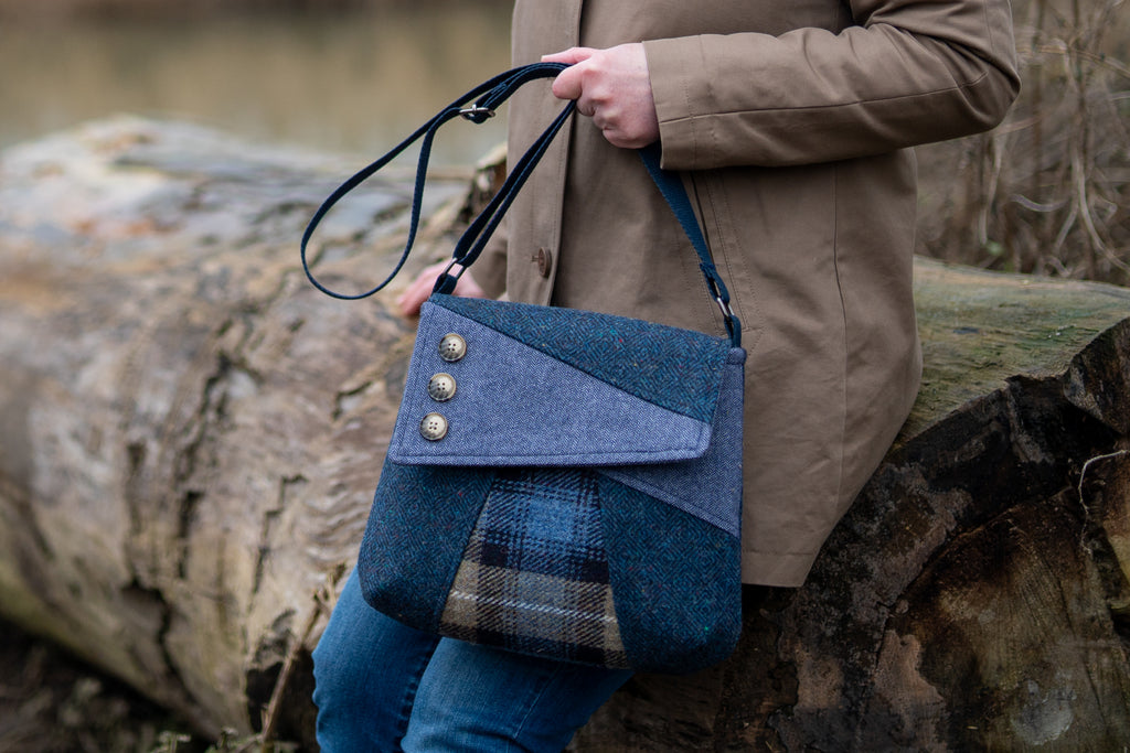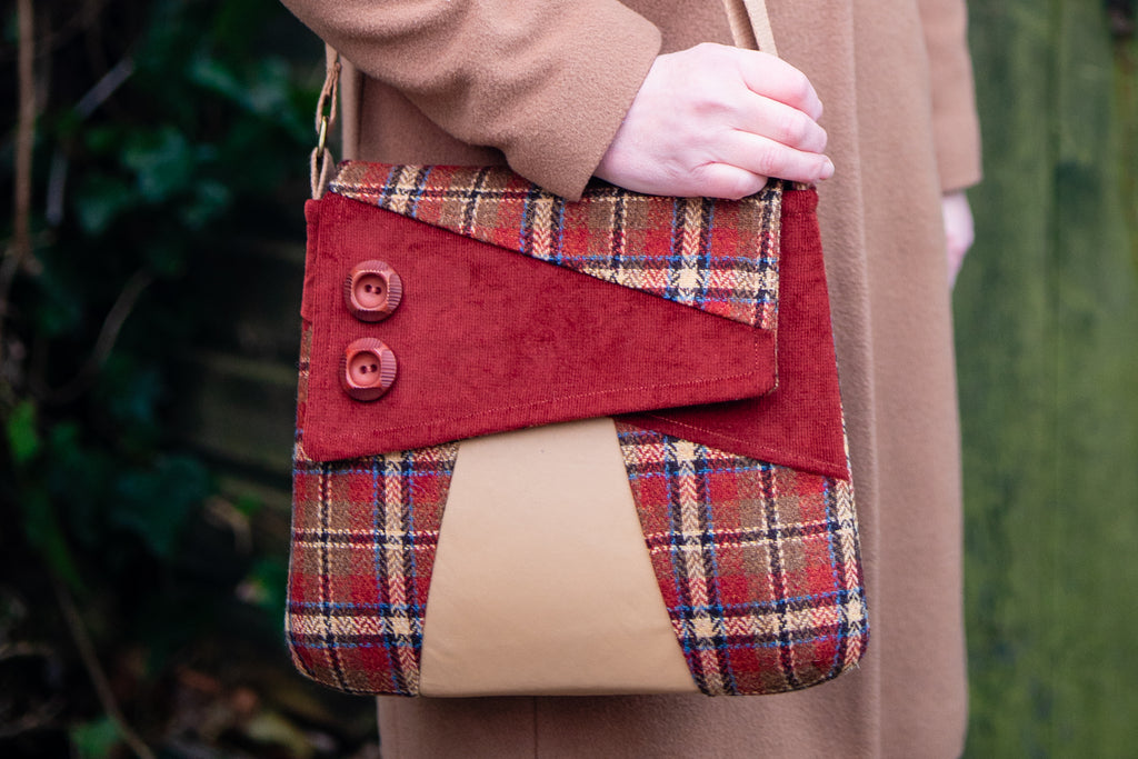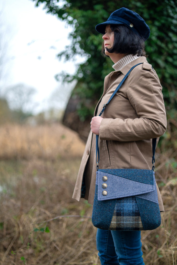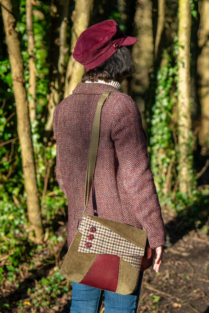 A stylishly simple retro cross-body bag with clean lines and asymmetrical details. The Covehithe Messenger Bag is made with a multi-pieced front and a plain back, making it ideal for using some smaller pieces of contrasting fabric. The style also features a two-part asymmetric flap and has templates and instructions for both zippered and patch interior pockets. The strap can be made from self-fabric or from webbing (adjustable). The style is named after a village on the Suffolk coast.