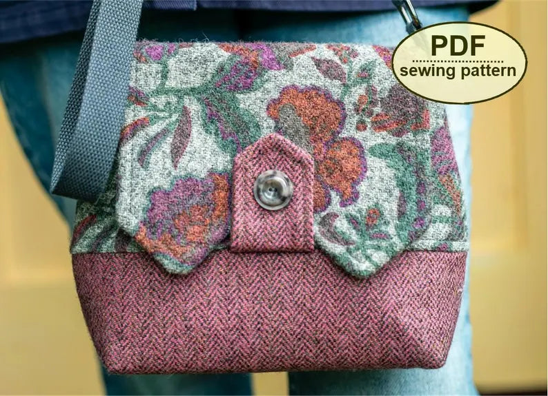 This listing is for the new mini cross-body version of our original Home Front Bag, inspired by the styles of the early 1940s. The PDF includes full-sized templates and detailed instructions with diagrams. This cute but practical style is a compact size and shape, with unusual flap detailing reminiscent of the military styles of the Second World War, but with a modern twist.