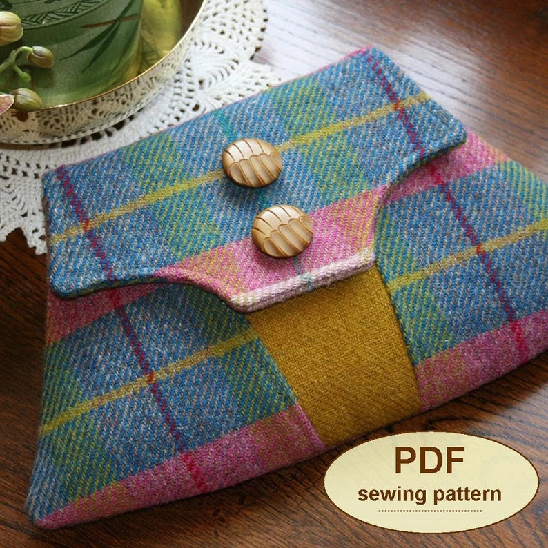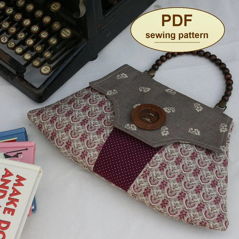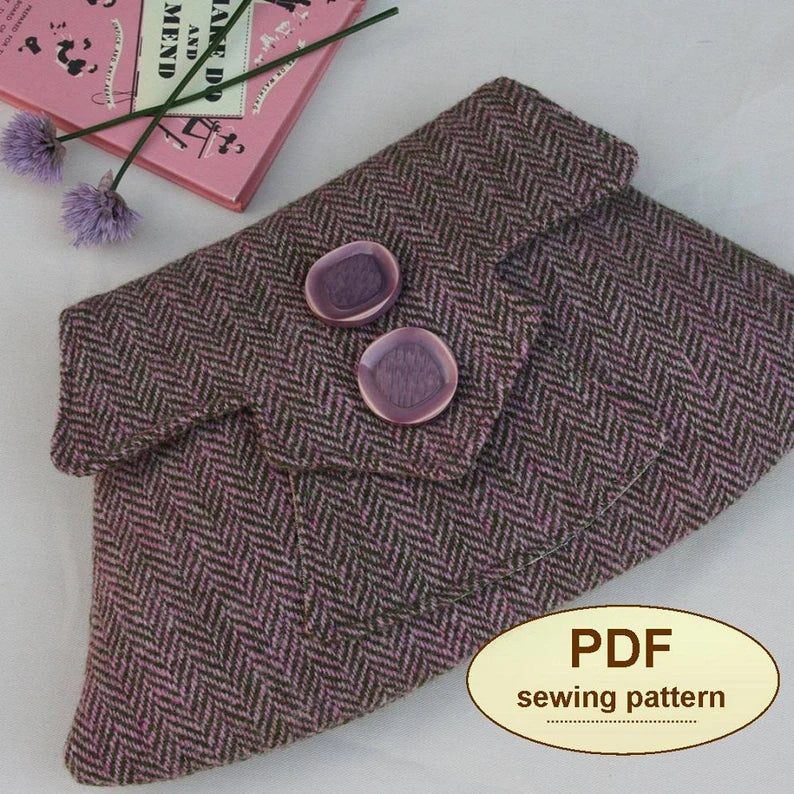 Inspired by the military styles of the wartime years, this PDF SEWING PATTERN is for a simple envelope clutch bag. The pattern has two style choices.
