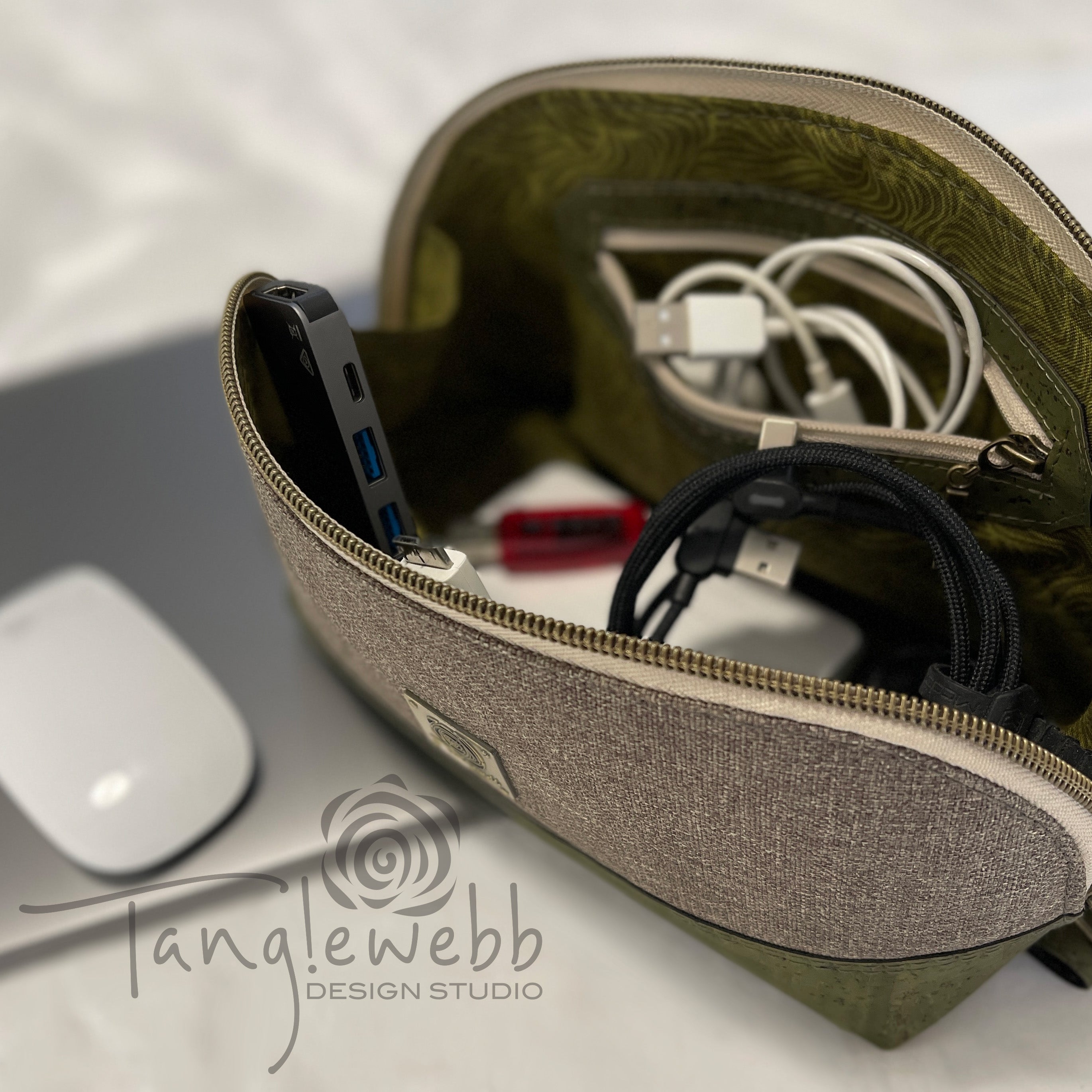 The unique shape gives this bag an edgy appearance, as well as added interior space. With a change of materials, the Peregrine easily changes to a stylish handbag. The Peregrine can be used as a pencil case or a case for all of your electronic cords and chargers.
