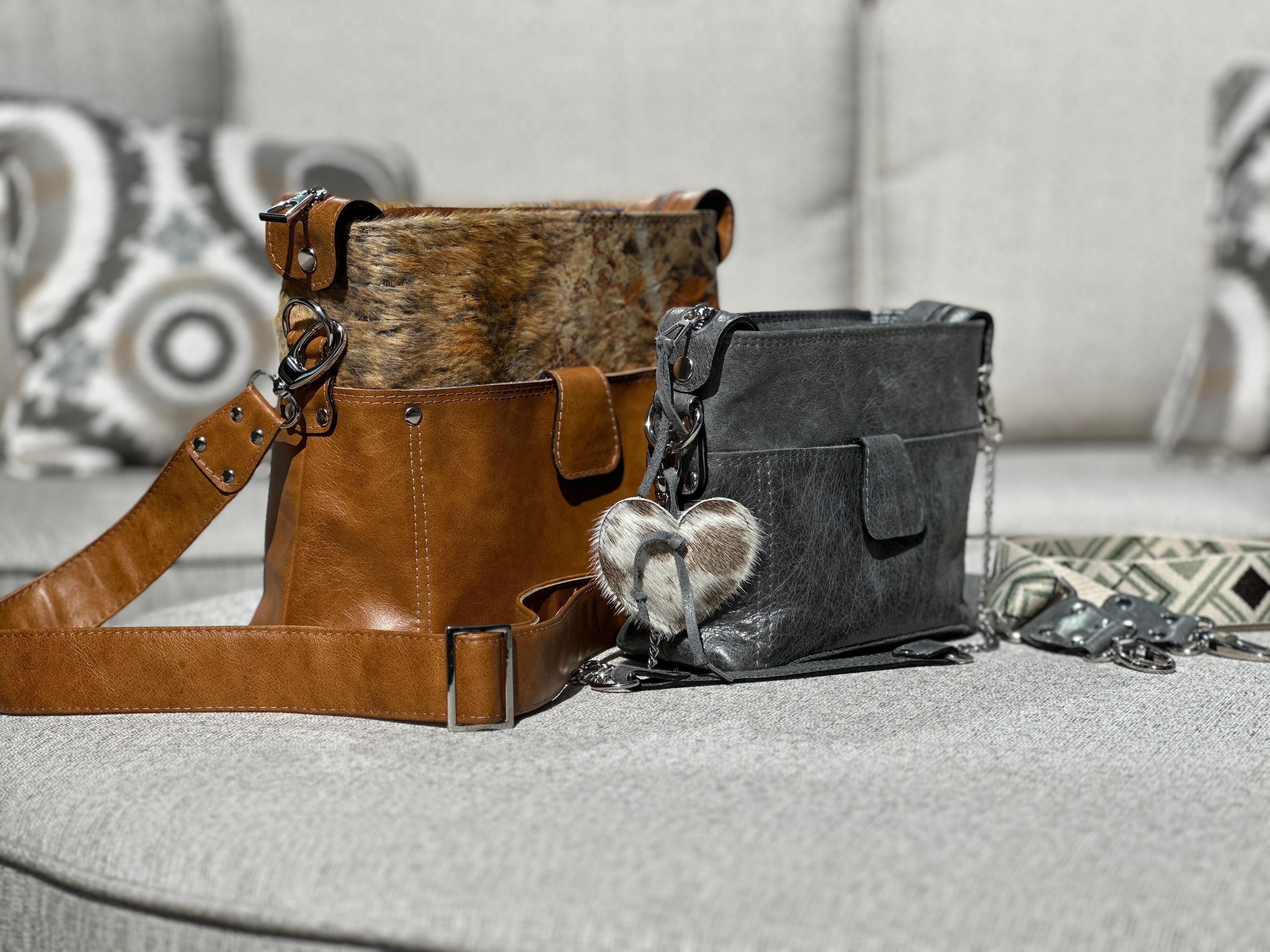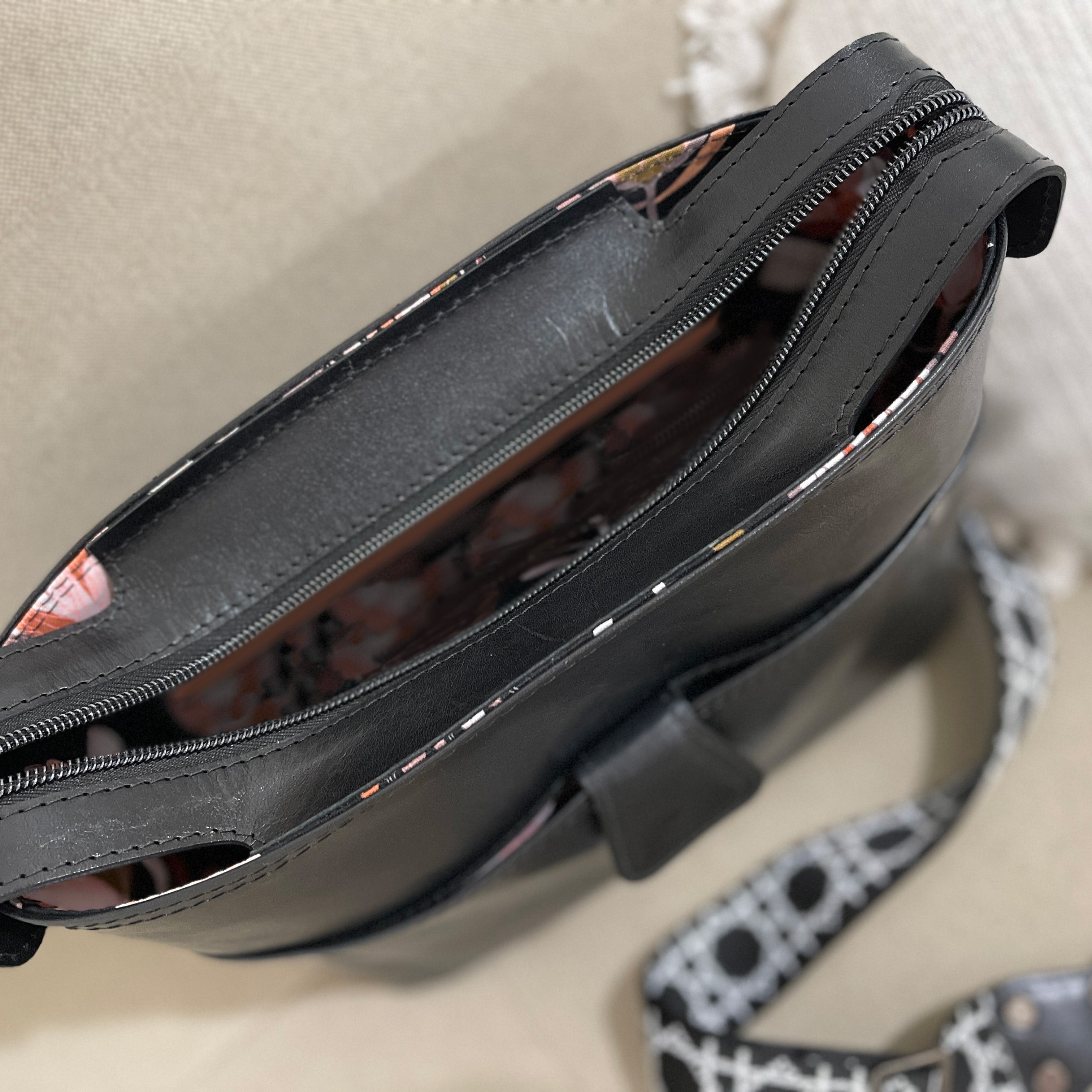 A truly unique and stylish handbag that can be worn as a shoulder bag, crossbody or carried as a handbag.