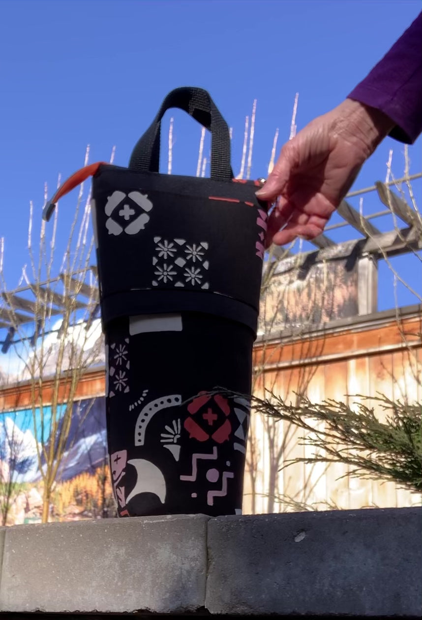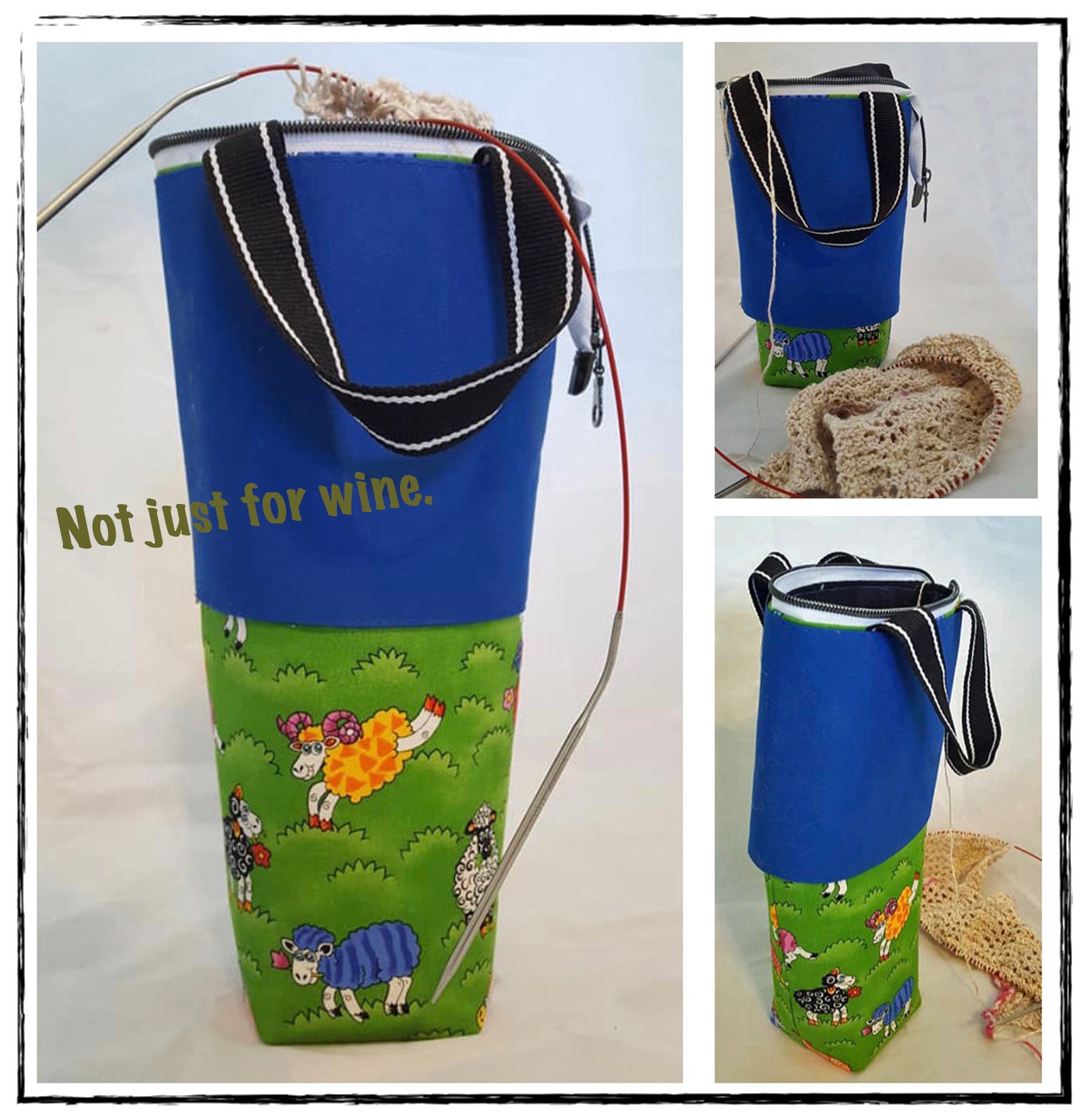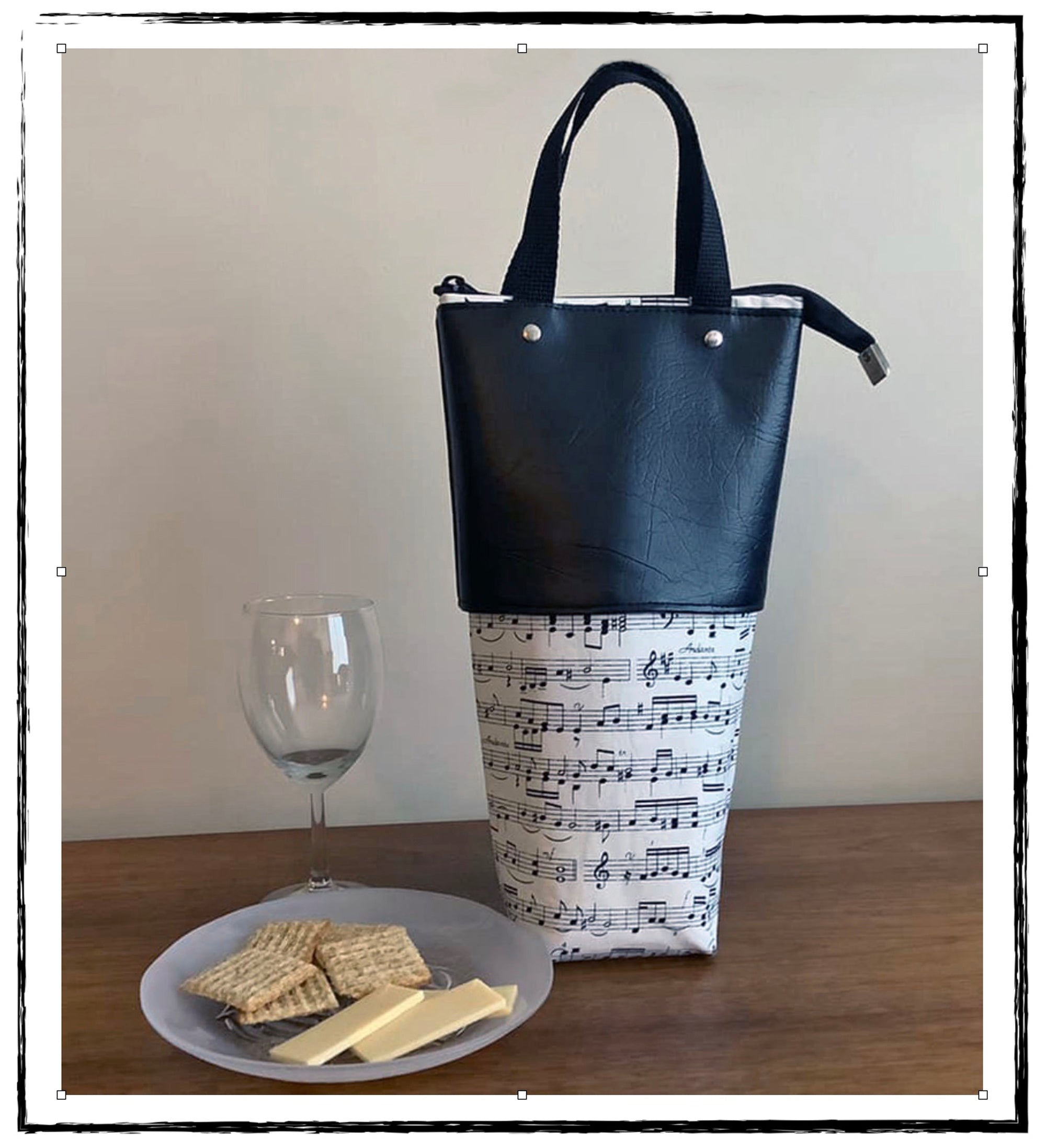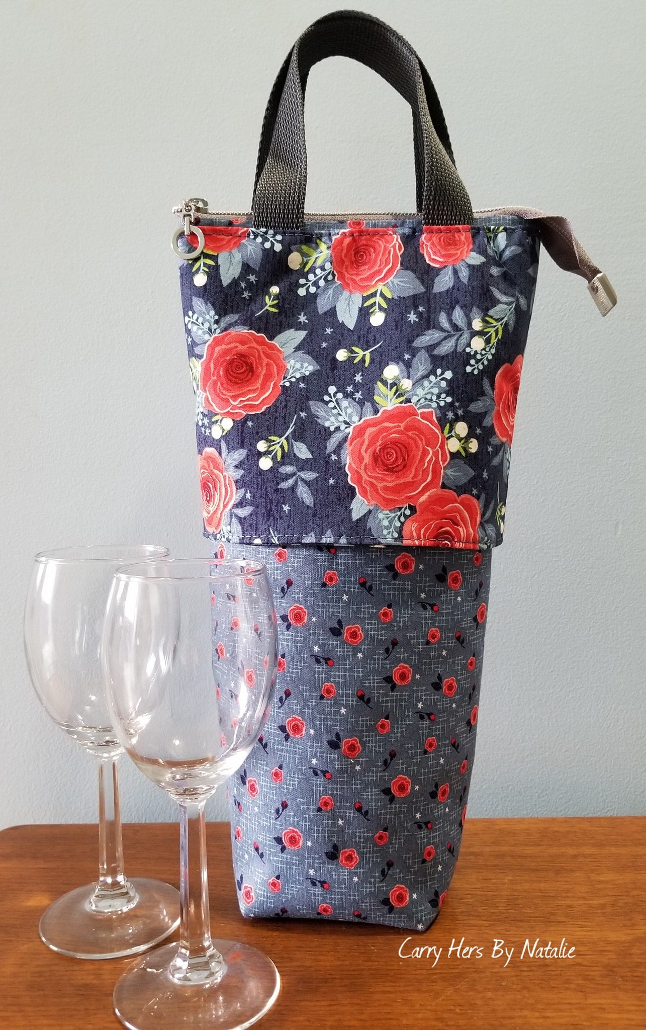 WINED DOWN is an upright wine tote with a secret; the top cuff slides down for pouring. For a chilled wine, there is the added advantage of a bit of insulation to help keep the chill. You can bring along a hostess/host gift in a fancy paper bag but why would you when this pour-table wine tote is so easy to make and so classy too?