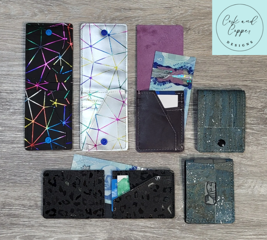 The Wormwood Wallet is a great beginner pattern. A sleek wallet with a back ID holder, 2 or 4 card slots, paper money slot or 2 back slip pockets, and 1 or 2 receipt holders. This compact, versatile wallet has instructions for 18 ways of sewing it, however the combinations are almost endless! This wallet is perfect for everyone, especially great for a night out, or quick trip up town. The Wormwood Wallet is a satisfying and quick sew, and a great scrap buster, or market filler. If you are like me, I always have so many scraps that need to be used. The included cut files make them a breeze to cut! Each of the 18 versions has a corresponding color-coded grouping in the cut files, and chart for helping hand cut.