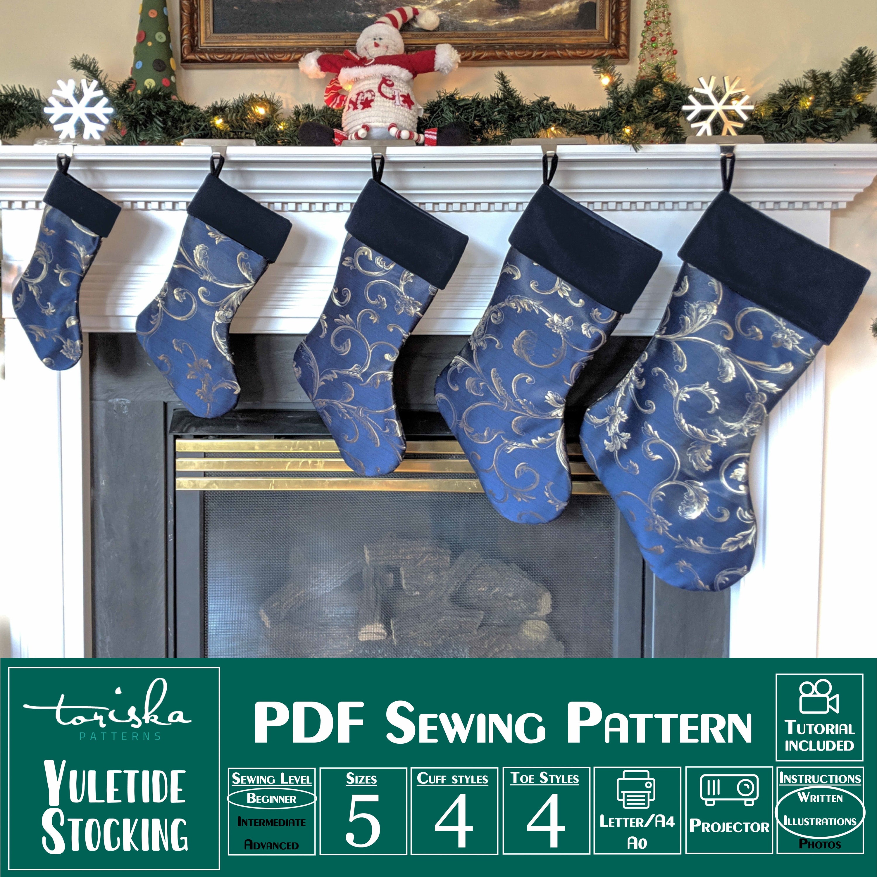 The Yuletide Stocking is a simple and festive Christmas stocking design with several cuff and toe shapes. This stocking is beautiful in any fabric, including velvet, brocade, home decor cotton, or quilting cotton. Use piping, embroidery, or other embellishments to create beautiful customized stockings for your whole family. This sewing pattern is suitable for a confident beginner. There are instructions for making the stocking with or without the cuff.